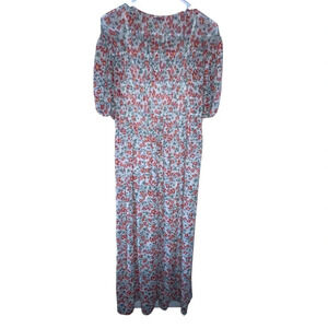 ZARA Floral Smocked Maxi Dress Puff Sleeve Size Small Bohemian Preppy Casual