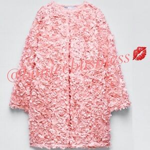 Round neck coat with floral detail and long sleeves. Front closure with metal hook. 100% polyester