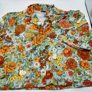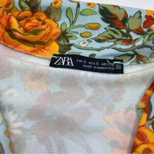 ZARA Floral Tropical Pallazzo Shirt Blue Orange Yellow Retro Button Down Small