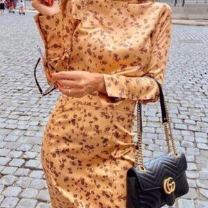 ZARA Beautiful Flower Print Satin Midi Skirt Size