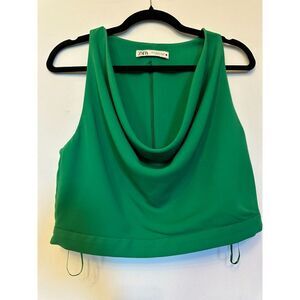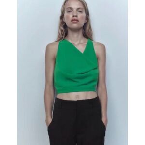 ZARA Flowy Draped Neckline Emerald Crop Top Size Medium for St Patricks Day!
