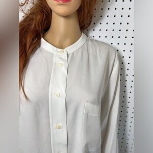 ZARA Button down flowy top without collar in Ecru (creamy white) satiny feel. Great over leggings, jeans or for the office. NWOT. Never used.