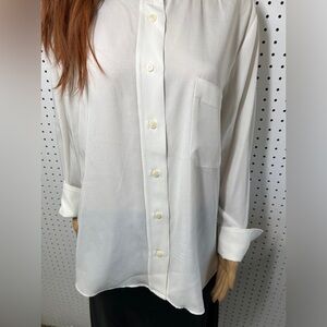 ZARA Flowy Top with Pocket ECRU XL Long sleeve button down collar-less