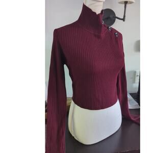 ZARA Four button accent rib light turtleneck Medium Mock Sweater M