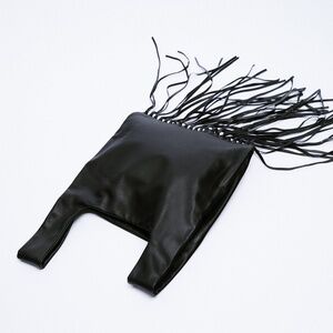 ZARA Fringed Leather Handbag Black BNWT