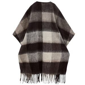 ZARA Fringed Plaid Poncho checked fringe boho open front blanket sweater