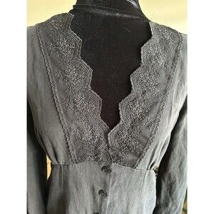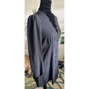 ZARA Front Lace Long Sleeve Button Front Dress Size Medium Black Gothic