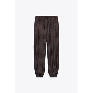 Mid-waist trousers with an elastic drawstring waistband. Blouson hem.
