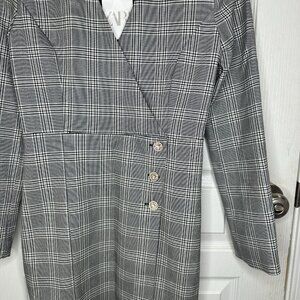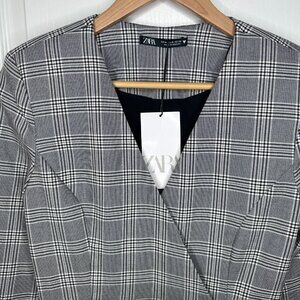 ZARA GRAY BLACK PLAID MINI DRESS WITH BUTTONS MEDIUM BRAND NEW WITH TAGS