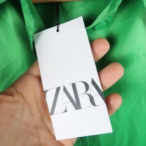 GREEN LONG SLEEVE BUTTON DOWN TOP SIZE MEDIUM BY ZARA NEW WITH TAGS