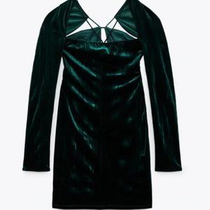 ZARA GREEN VELVET DRESS SIZE S REF. GREEN 2712/357