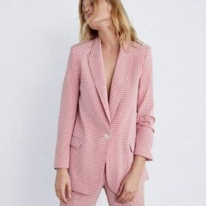 💕ZARA💕 Gingham Blazer ~ Pink Large NWOT