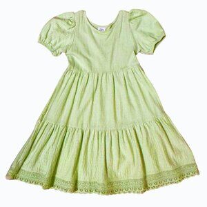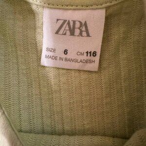 ZARA Girls’ Cotton Puff Sleeve Dress in Mint Green – Size 6