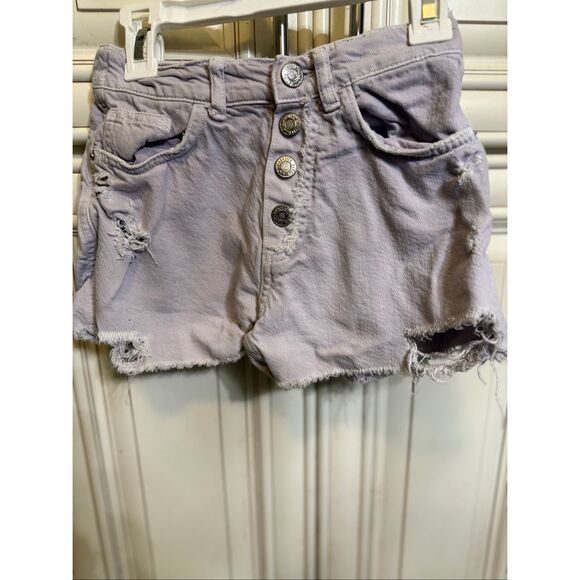 ZARA Girls Distressed Button Fly Cut Off Denim Jean Shorts Purple Size 10