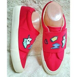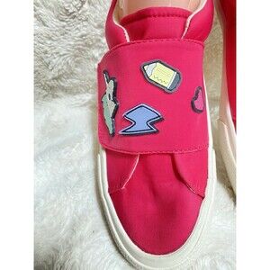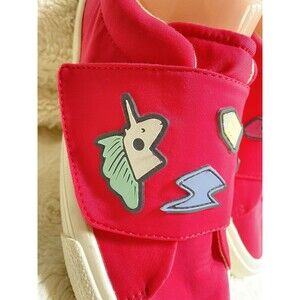 Stand out in these bold hot pink ZARA BAMBA sneakers, featuring a chunky sole, wide hook-and-loop straps, and playful patch graphics (unicorn, lightning bolts, hearts & more!).