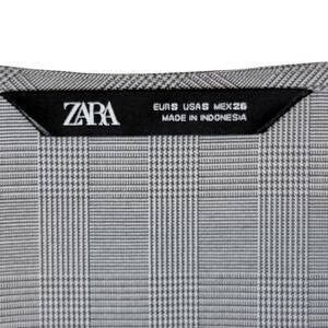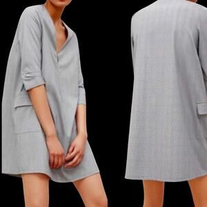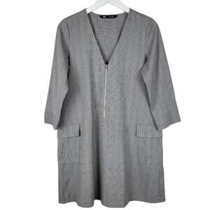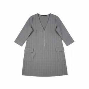 ZARA Glen Plaid V-Neck Patch Pocket Zip-Front Modern Sheath Dress - Size S