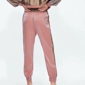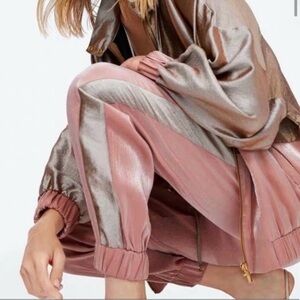 ZARA Glowy shimmery Drawstring Cuffed Joggers Pants Size Large
