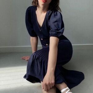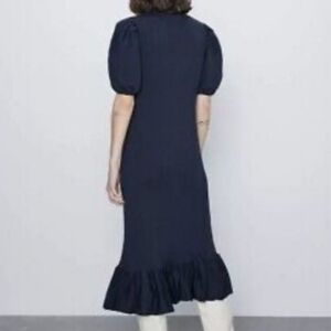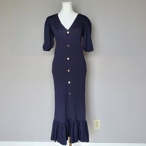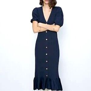 ZARA Gold Button Ribbed Knit Midi Ankle Peplum Hem Blogger Dress Size S