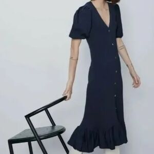 ZARA Gold Button Knit Midi Peplum Hem Dress in wonderful condition. No flaws. May be mistaken for brand new.