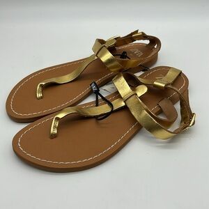 ZARA Gold Leather Flat Sandals Size 7.5 EU 38 NWT Leather Upper, Rubber Sole