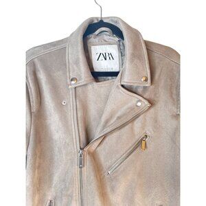 ZARA Gray Large Faux Suede Biker Jacket