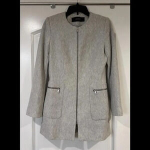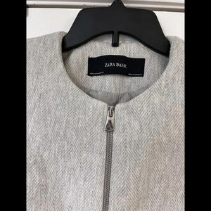 Beautiful ZARA Gray Marl Herringbone Frock Coat Zip Up Career Blazer- Size Medium