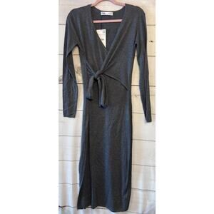 ZARA Gray Sweater Wrap Dress NWT Size SM Chic Classic