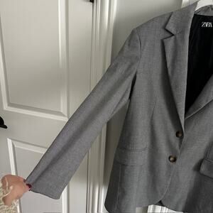 ZARA Gray Tailored Double Button Blazer Women's Small Glen 540