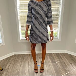 ZARA Gray Basic Medium Knit Black Stripes 3/4 Sleeves Dress