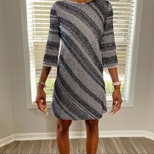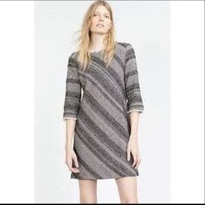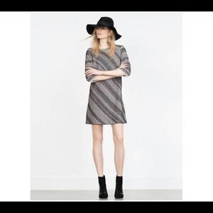 ZARA Gray Basic Medium Knit Black Stripes 3/4 Sleeves Dress