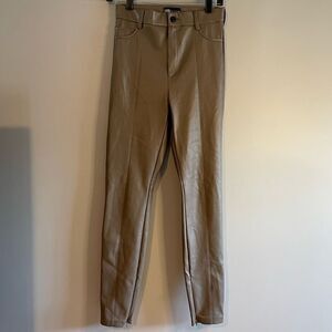 ZARA Gray-Brown High Waist Vegan Leather Pant with Side Split Hem | SZ S