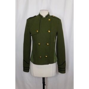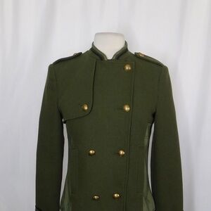 ZARA Green Army Jacket Pea Coat Wool Double Breasted Jacket Military Small