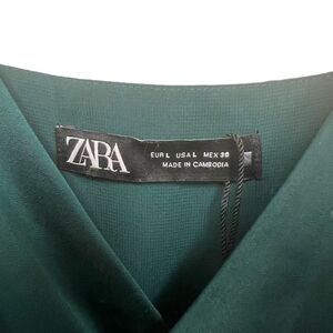 ZARA Green Asymmetric Midi Lace Slit Dress Size Large