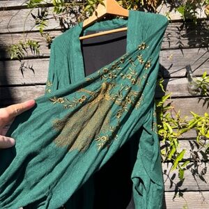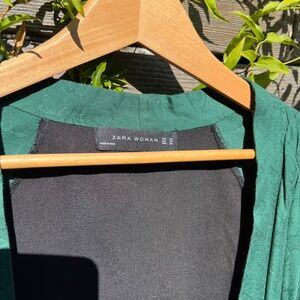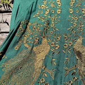 ZARA Green Embroidered Jacquard Peacock Kimono Jacket