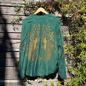 ZARA Green Embroidered Jacquard Peacock Kimono Jacket Size XS