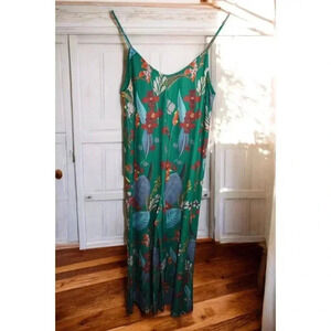 ZARA Green Floral Jumpsuit Satin Effect Tropical Vibes SEUC No notable flaws.