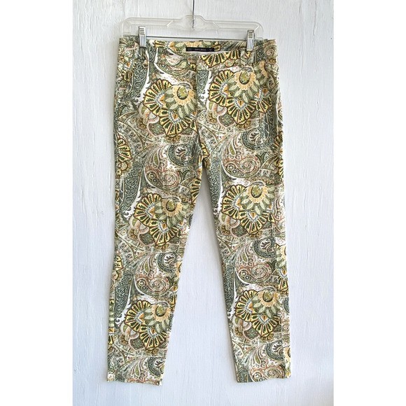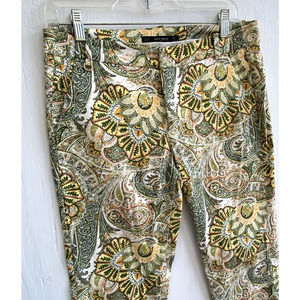 ZARA Green Floral Print Crop Pants Slim Leg Stretch Size 4