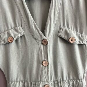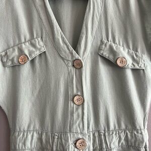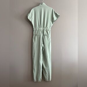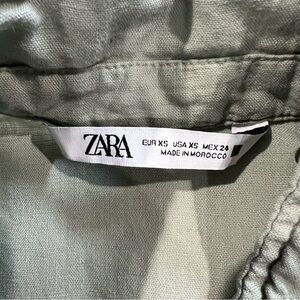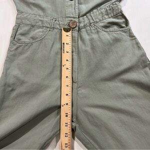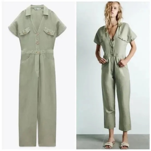 ZARA Green Khaki Linen Blend Short Sleeve Jumpsuit Sz XS