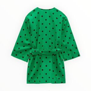 ZARA | Green | LINEN BLEND POLKA DOT KAFTAN