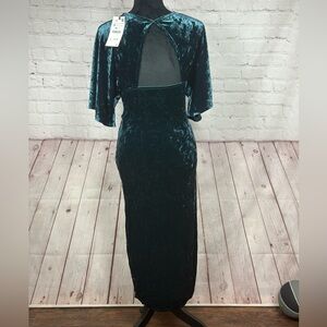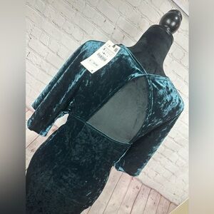 ZARA Green Velour Vintage Inspired Wrap Over Special Occasion Dress Sz S, NWT
