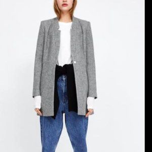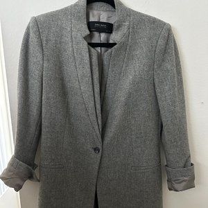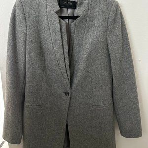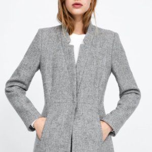 ZARA Basic Collection Wool Coat. Frock style. Inverted lapel. Button front. Grey Marl color.