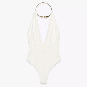 ZARA HALTER SWIMSUIT WITH METAL COLLAR