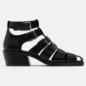 ZARA HEELED BUCKLED GENUINE LEATHER CAGE SANDALS