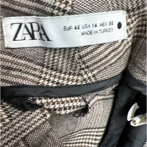 ZARA HERRING CHECK Women Brown Dress Trousers Pants Size 14 Polyester Blend