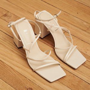 ZARA HIGH HEELED STRAPPY SANDALS Off White US 9