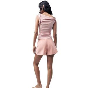 ZARA HIGH WAIST LINEN BLEND BERMUDA SHORTS PALE PINK SIZE M | 7385/419