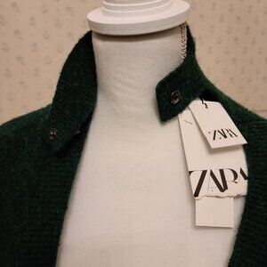 ZARA HUNTER GREEN CROP SWEATER WITH KEY HOLE NECK BAND XS