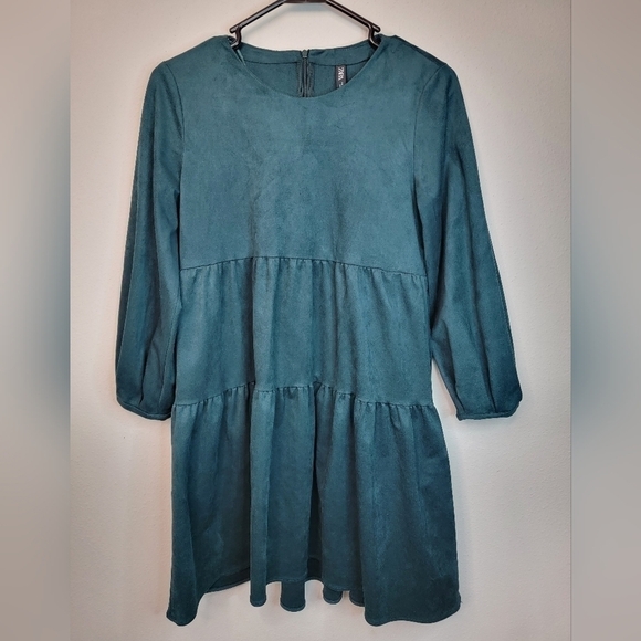 ZARA Heavy Suede Forest Green Tiered Fall Dress Size Small
