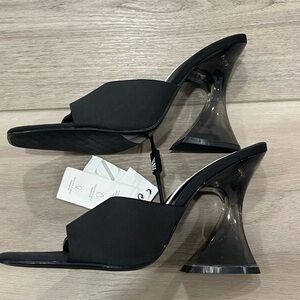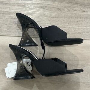 ZARA Heel Sandals Women’s 7.5 Black Methacrylate Open Toe 3663