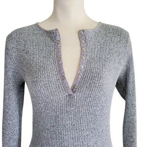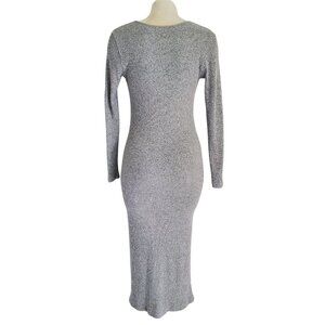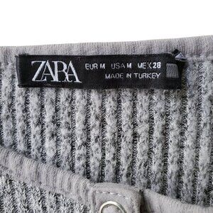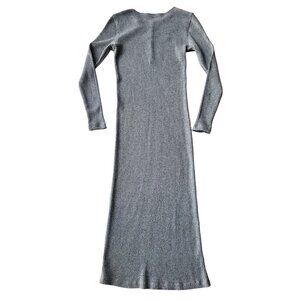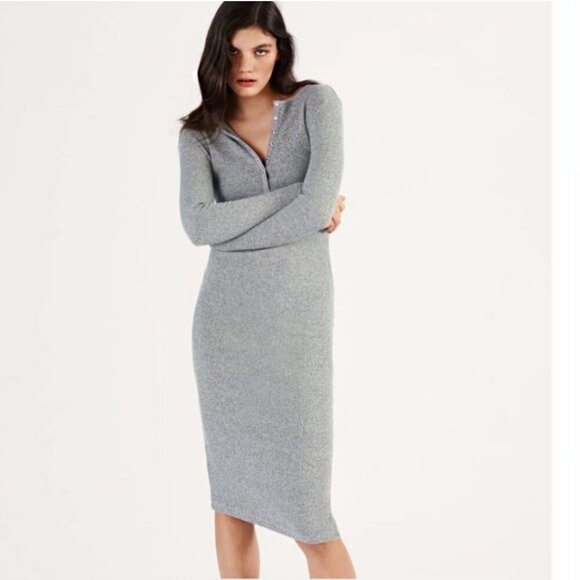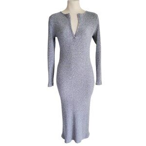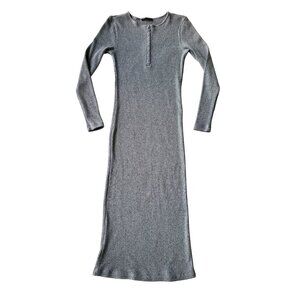 ZARA Henley Heather Gray Ribbed Polo Neck Soft Midi Dress Scandi Girl Size M
